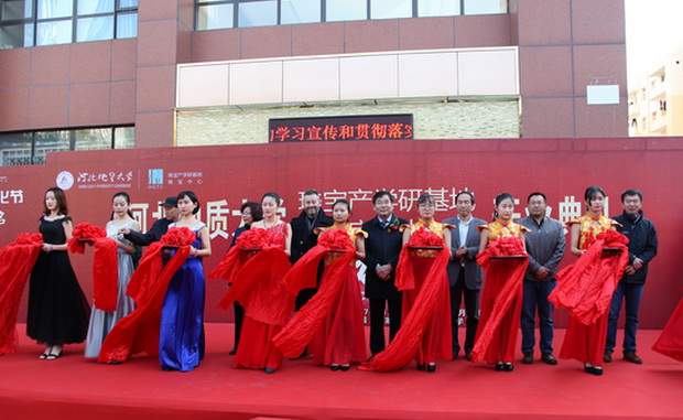 珠宝产学研基地开业仪式,在我校综合楼门前广场隆重举行。校长王凤鸣,校党委副书记刘耀辉,副校长南振兴、侯书文,宝石与材料工艺学院院长王礼胜、书记黄本春和桂林理工大学珠宝学院院长李东升、副院长沙鑫,河北大学中央兰开夏传媒与创意学院院长吕屹及英方副院长席恩.休斯先生等相关领域专家出席活动。我校相关部门负责人及社会各界珠宝玉石爱好者也到场参加了活动。