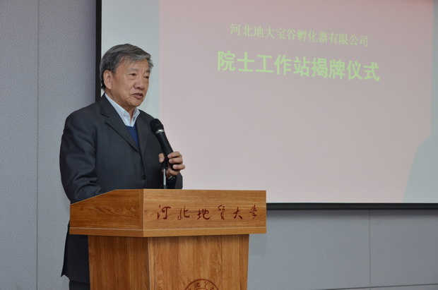珠宝产学研基地的建设及宝谷公司取得的发展和成果,表示在刘嘉麒院士的悉心指导下,在河北省科技厅、市科技局的大力支持下,河北地大宝谷孵化器有限公司一定能积极推进“院士工作站”的建设任务。
