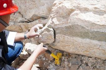 在三岔口矿区进行野外取样