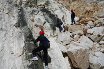 与矿区技术负责人在野牛沟矿区进行野外地质考察