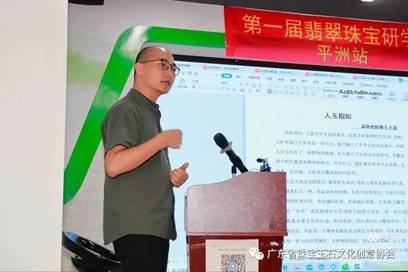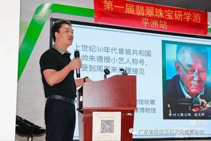 广东省珠宝玉石文化创意协会胡汝杰会长做《翡翠原石贸易》的报告。