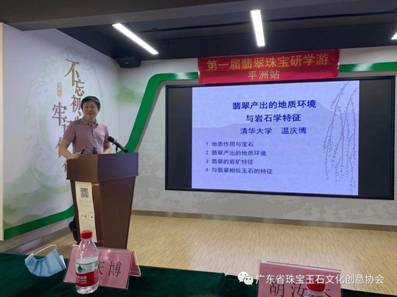 来自清华大学的温庆博教授为学员们做了《翡翠产出的地质环境与岩石学特征》的专题报告。学员们认真聆听,仿佛置身大学课堂,从地球物理角度了解了地质作用与宝石、翡翠产出的地质环境、翡翠的岩矿特征、与翡翠相似玉石的特征。