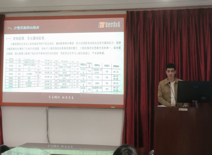 本次培训主题是 “少数民族学生教育与管理”,哈木拉提与边泓旭两位老师结合工作实际,以“少数民族学生特点、少数民族学生教育引导”等四个方面为切入点,从“思想引领、学风建设、实践育人、就业指导、情感关怀、习俗关怀、心理关怀、应急预案”等十个方面进行了深刻的阐述,同时借助生动的案例与大家分享了自己的工作思路、方式和方法,将生活、工作中的所感所悟运用到学生管理中,引领少数民族学生在学习、生活和工作中不断进步并取得优异成绩。两位老师精彩且细致入微的讲授让与会人员受益颇多。