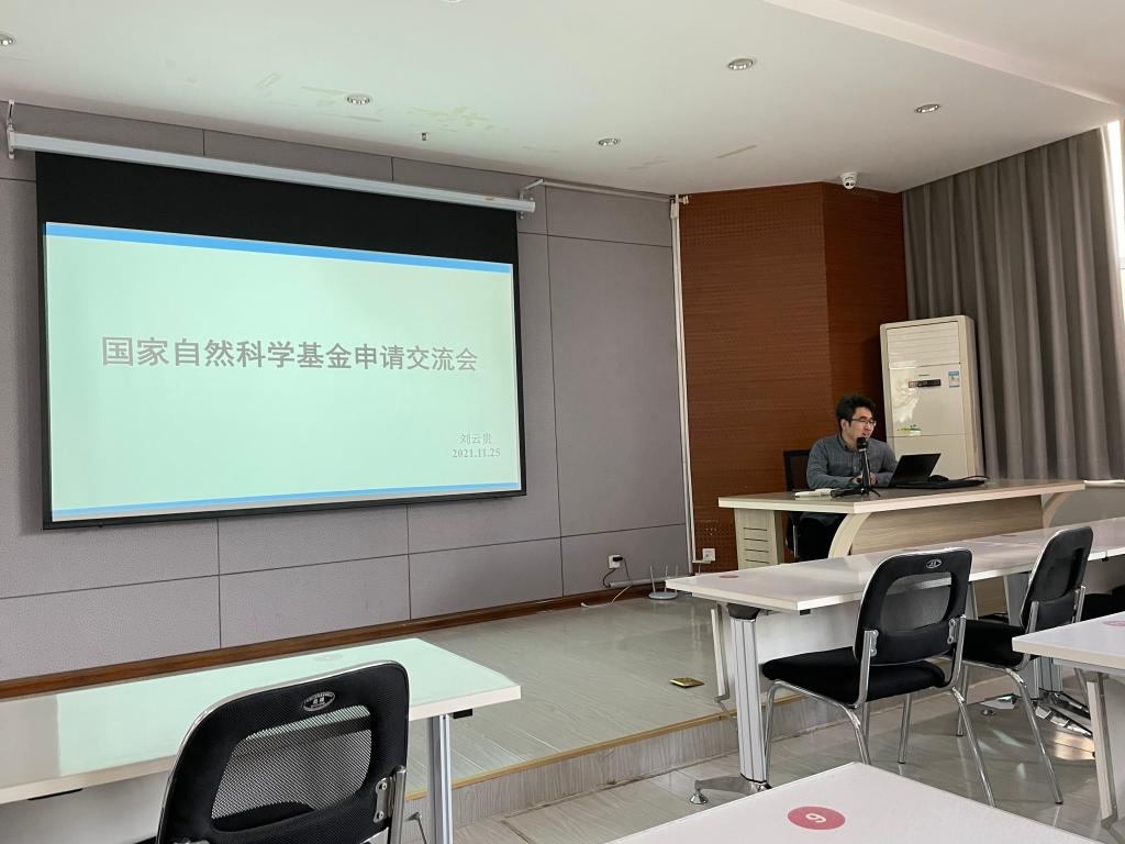 青年博士、国家自然科学基金青年基金获得者史淼和刘云贵老师,针对基金申报的选题、思路、和科学问题凝炼等方面进行交流指导。三十余位有意申报国家级基金项目的教师参与交流会,并进行了深入的交流与探讨。