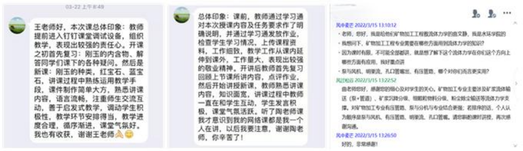用心护航特色教学,在全体教师共同努力下,在学生的广泛参与和支持下,知识在云端有效传递。同时,授课融入学院学科建设特色,充分发挥学科资源优势,为课程教学目标的优质达成提供了保障。