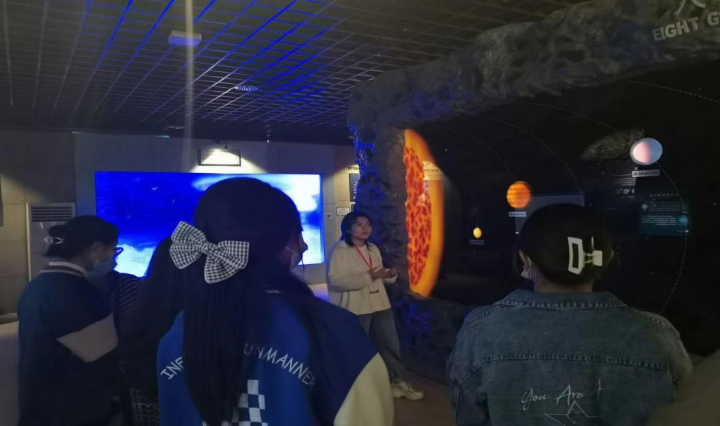 在一楼宇宙与地球厅,温馨瑶同学像我们介绍了宇宙与地球的基本知识,包括宇宙的起源,太阳系的组成、地球的圈层结构、各种地质作用等。