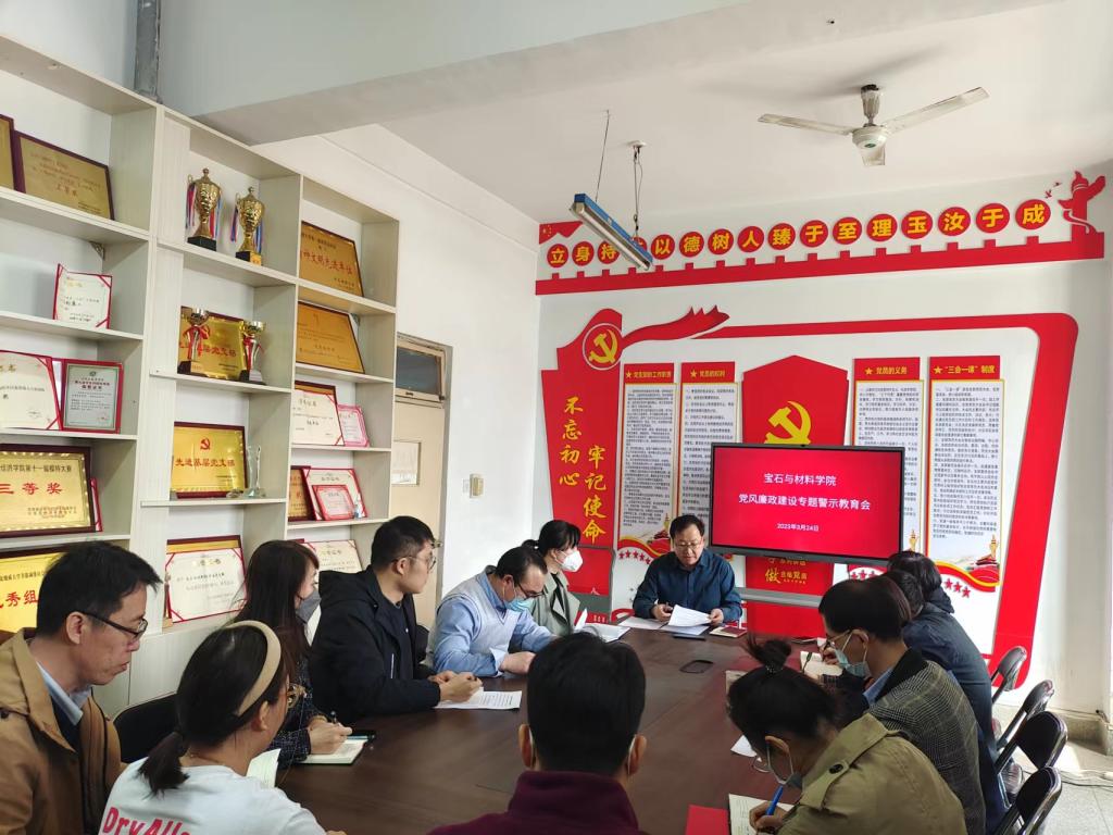 李艳院长布置了《宝石学院党风廉政建设警示教育实施方案》,并就加强师德师风建设、对廉政风险点加强监督和警示教育等工作做了部署。