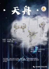由牟云老师指导的作品“问舟”,以载人航天为主题,使用航天器等元素进行表现,表现了中国载人航天工程的伟大壮举和中华民族伟大复兴的决心。(图四)