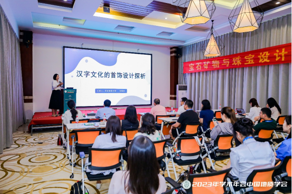 金翠玲老师在宝石矿物与珠宝设计分会场作了主题为“汉字文化的首饰设计探析”的报告,并与参会专家学者做了关于汉字文化、设计方法等方面的深入交流讨论。