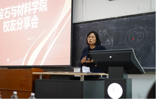 两位校友分享完后,宝石及材料工艺学教研室主任陶隆凤老师进行发言,向同学们提到要吸取两位校友的经验,为未来发展方向提前做好规划,并坚定不移的走下去,要主动了解行业前景和行业动向。