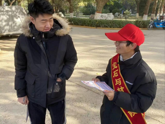 不止是学校的同学们,还有许多街坊邻居被有趣的活动吸引了过来,我院的志愿者们热情的为大家做着讲解,脸上洋溢的笑容从未因为寒冷的天气而消退。在科普中,同学们主要从尖晶石的定义、种类以及用途作为切入点,向大家进行更深层次的说明。