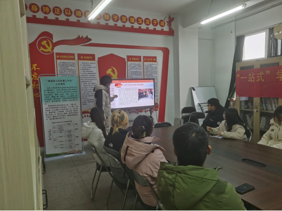 学生党支部党小组成员李济凡、闫红雨于2023年12月14日晚7:00对2022级全体入党积极分子进行政治理论学习教育。