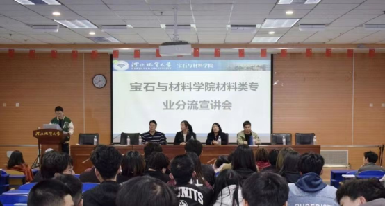 宝石及材料工艺学专业教研室主任陶隆凤介绍了特色专业内容、讲解专业未来趋势、介绍该专业的优秀毕业生。对于爱情,该专业是浪漫方面的专家;对于研究,该专业是更透彻地探究宝石的第一人。该专业的日后潜力十分丰富,是不可磨灭的部分。