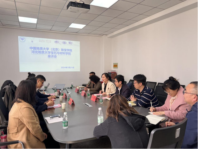 3月21日,中国地质大学(北京)珠宝学院郭颖院长一行来我院访问座谈。参加人员有网黄直播 院长李艳,教务处副处长杜江民,副书记谷月娟,实验室、专业负责人以及中国地质大学(北京)珠宝学院毕业来我院工作的教师等。