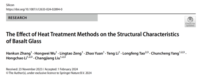 近日,硅酸盐材料领域国际期刊《silicon》(中科院三区,IF:3.4)在线刊发了我院二年级硕士研究生张翰坤以《The Effect of Heat Treatment Methods on the Structural Characteristics of Basalt Glass》为题的学术论文,指导教师为刘昶江副教授。