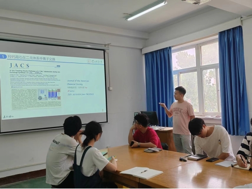 张翰坤介绍了锂-钠二元体系离子交换动力学问题,曾令桃介绍了玄武岩纤维复合可见光催化材料的对比研究结果,李腾介绍了玄武岩纤维布复合吸波材料的研究近况;玄武岩纤维材料研究团队各位老师就研究生汇报的内容进行了讨论,并给出了意见和建议。