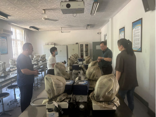 在检查过程中,学院领导对实验室的安全设施、实验操作规范、危化品管理等方面进行了逐一查看。他们首先来到宝石与材料工艺学实验室,检查了切割打磨设备的运行情况。领导们强调,实验室要严格按照操作规程进行,确保人员安全。