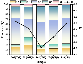 图2 纤维样品FTIR光谱中结构单元的Qn和R值