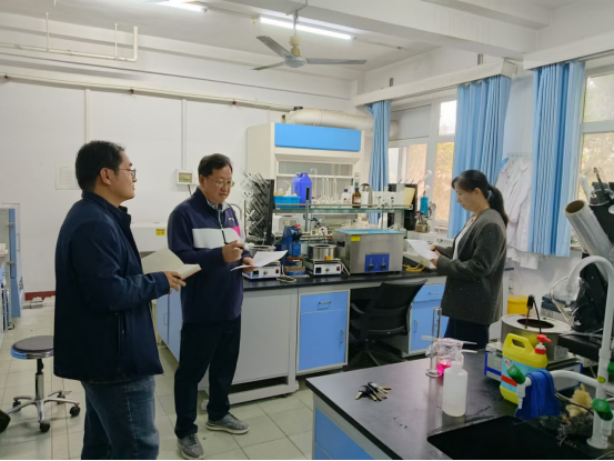 检查组一行仔细检查了实验室的环境卫生、消防器材配备、用火用电安全、个人防护措施、废水废液及垃圾分类处理、强磁强电等大型仪器设备管理、危险化学品存储及使用、仪器设备使用效率等,听取实验室负责人的情况汇报,与现场师生进行交流,深入了解实验室的日常管理状况、实验设备使用情况以及学生科研实验开展、学业进展等情况。