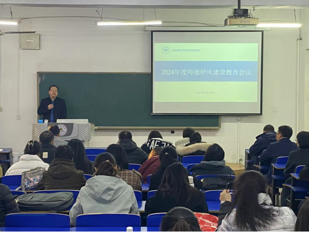 为了深入学习贯彻党的二十大精神和全国教育大会精神,进一步加强师德师风建设,提高教师的职业道德素质,2024年11月25日,我院成功召开了师德师风建设会议。会议由学院党委书记王旭辉主持,全体教师参加了此次会议。