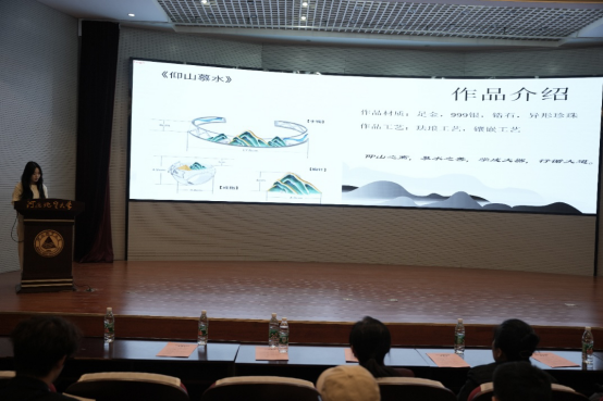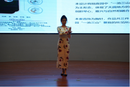 本届珠宝文化节非常注重学生实践能力的培养,学院精心设计了三项大赛,分别是:展现“仰山慕水”校园文化精神的校园文化文创纪念品设计大赛;培养学生设计和实践能力的“珊瑚心·红豆缘”创意首饰设计大赛;以及锻炼学生创业能力的“百宝争辉”珠宝商贸实战赛。在四周的时间里,参赛学生共提交了一百多份设计作品,同时有13个销售团队参加了本次“百宝争辉”珠宝商贸实战赛的角逐。经学院和企业共同评审,分别评选出一二三等奖优秀作品和优秀销售实战团队。获奖学生代表在文化节闭幕式的现场分别讲解他们的设计理念和销售收获,展示大赛成果。
