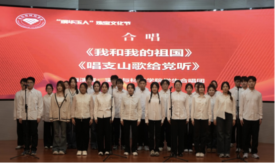 学院学生会文艺部合唱团同学们演唱的《我和我的祖国》《唱支山歌给党听》两首红歌,用最真挚的情感和最动听的歌声,表达对祖国的热爱,拉开了闭幕式演出的序曲。