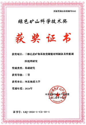 1月10日-12日,第二届中国绿色矿山国际年会暨2024年度绿色矿山科学技术奖颁奖大会在北京召开。由我校为第一完成单位申报的项目“三维孔道矿物基相变储能材料制备及性能调控机理研究”,荣获2024年度绿色矿山科学技术奖基础研究二等奖。这是我校网黄直播