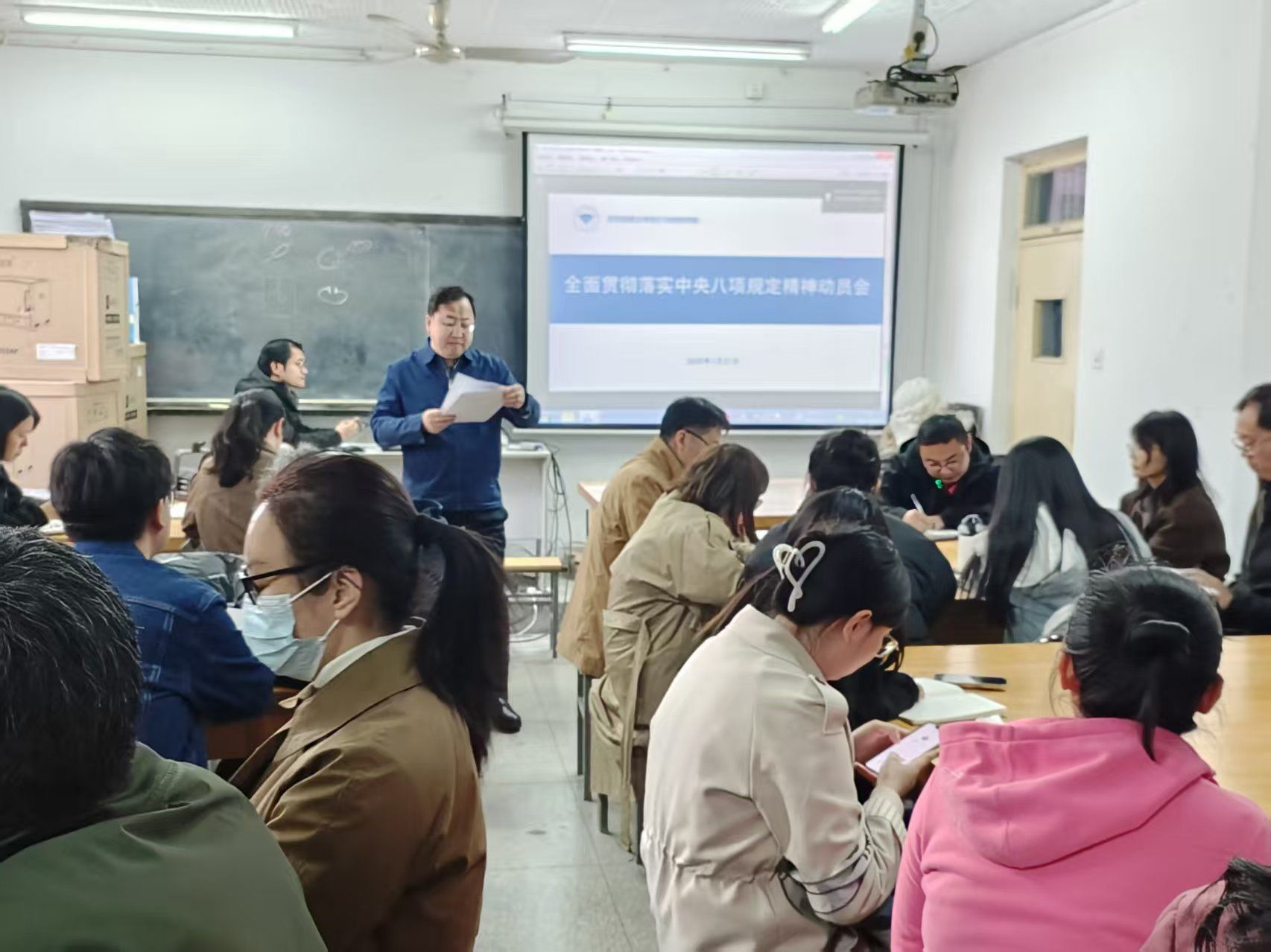 会上,王旭辉书记详细介绍了学院开展深入贯彻中央八项规定精神学习教育方案和具体安排。并对本次学习教育的背景特点、主要目标、重点任务进行了强调,并指出推动学院深入贯彻中央八项规定精神学习教育走深走实,要切实增强贯彻落实的政治自觉、思想自觉、行动自觉。