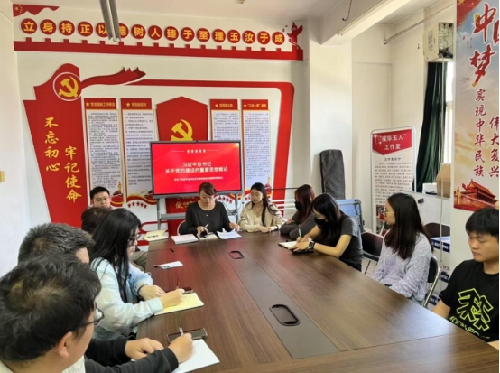 学生党支部书记张曼琳领学了《习近平总书记关于党的建设的重要思想概论》,并结合自身工作实际分享学习感悟。同学们结合日常学习情况,开展学习交流,大家认为,通过深化理论学习,更明晰了新时代学生党员的责任与使命,未来将继续发挥先锋模范作用,以更高标准严格要求自己,切实将学习成果转化为奋进动力。