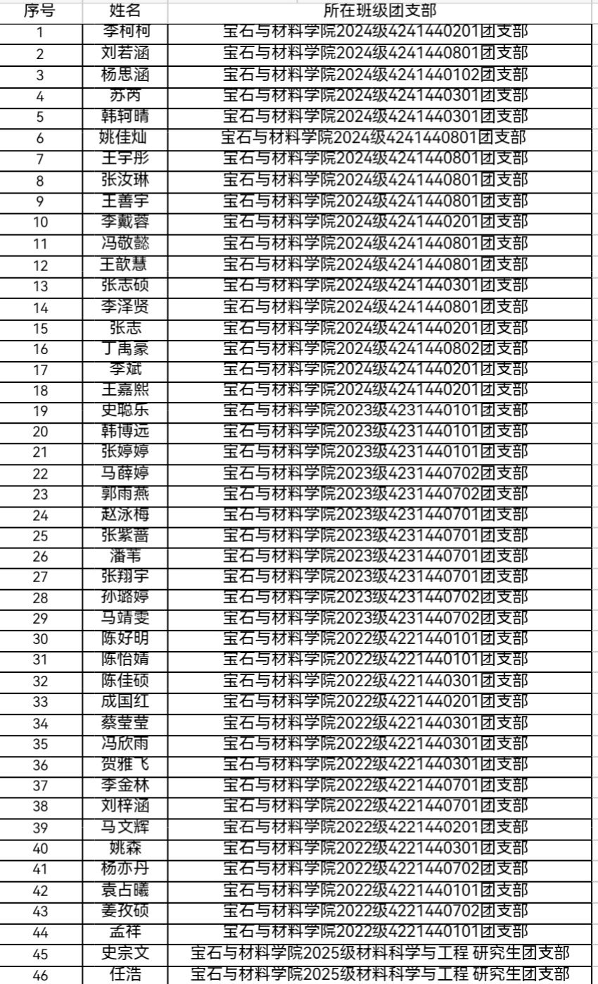 2025学年至2026学年秋季网黄直播 入团发展对象名单公示