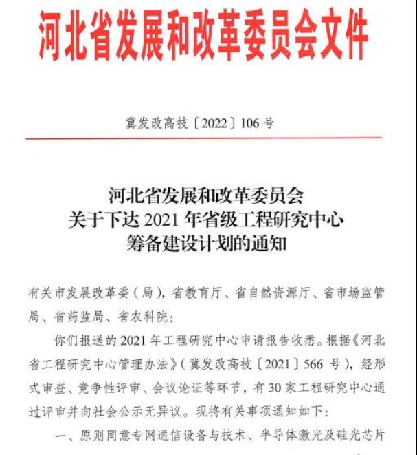图1“硅酸盐固废资源化利用河北省工程研究中心”获批立项建设(2021年申报,2022年1月正式获批立项建设)