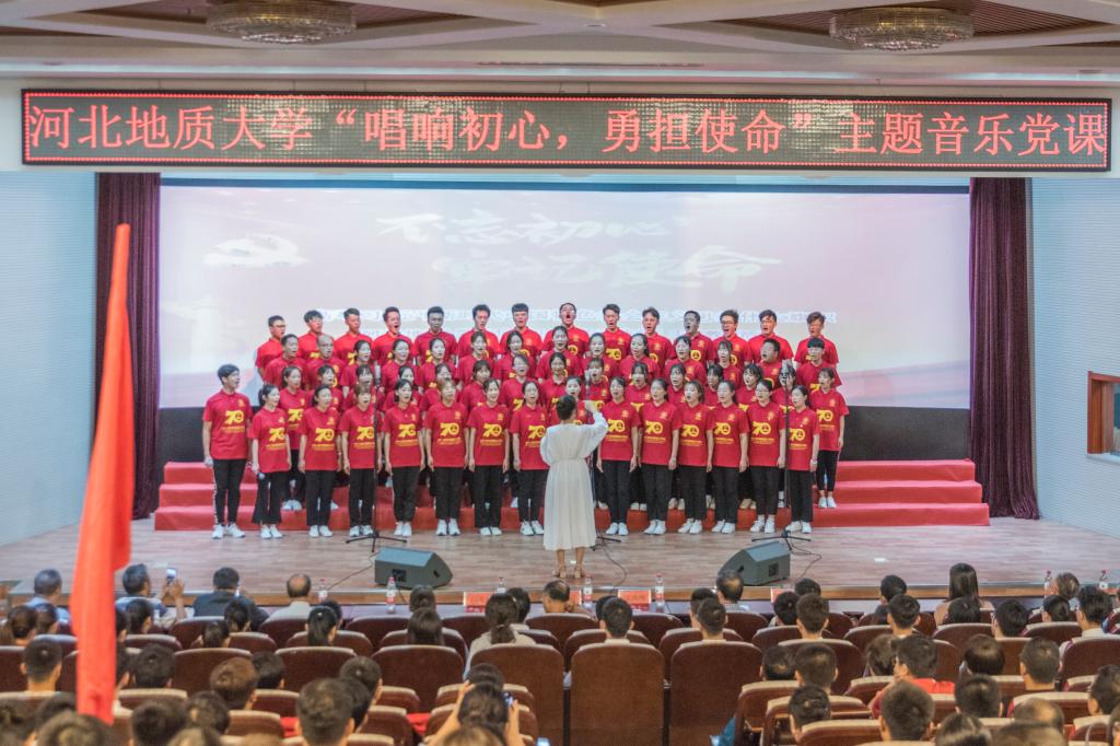 丹桂飘香硕果满枝,又是一年金秋十月。在新中国成立七十周年之际,为大力弘扬以爱国主义为核心的伟大民族精神,传承红色基因,弘扬长征精神,由网黄直播 勘察技术与工程学院、水资源与环境工程学院、资源学院以及宝石与材料工艺学院的精心组织下,“不忘初心、牢记使命”师生歌咏展演于 9 26 日下午三点在网黄直播 春秋讲堂精彩上演。此次到场嘉宾有校党委副书记南振兴、校党委副书记侯书文、副校长王滨、以及“不忘初心、牢记使命”办公室的各位老师、各职能部门和各学院的相关领导、勘察技术与工程学院、水资源与环境工程学院、资源学院、宝石与材料工艺学院的全体党员教师和学生。