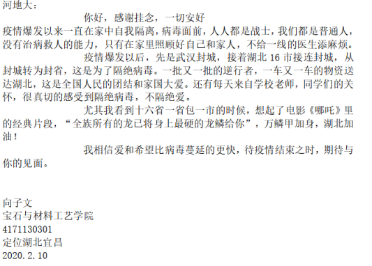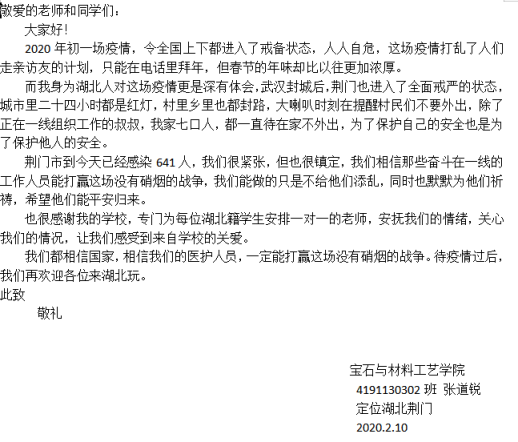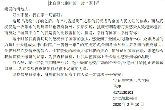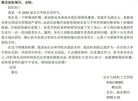 请学校放心,一切安好!---湖北籍学子向母校报平安