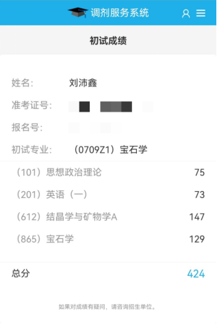 ,专业为宝石及材料工艺学,曾在大学期间担任班级班长、院学生党支部党小组组长。目前以总分第一的成绩考取中国地质大学(武汉)宝石学研究生。