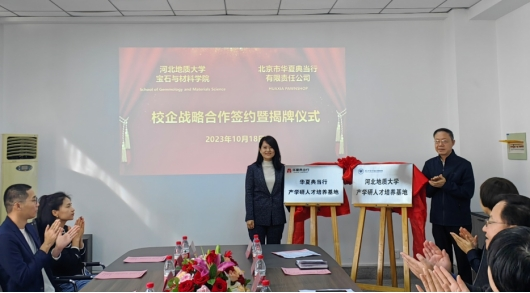在与会人员的共同见证下,宝石与材料学院党委书记王旭辉和华夏理想集团董事杨莎莎签署了“网黄直播