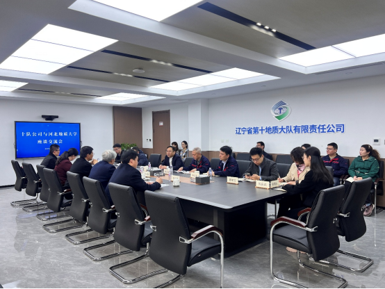 党委常委、副校长冯鸿雁带队赴辽宁省第十地质大队有限责任公司(以下简称“十队公司”)开展校企合作交流。十队公司党总支书记、总经理王卓及班子成员、相关技术人员,抚顺市望花经济开发区党工委副书记周宇哲等共同参与座谈。