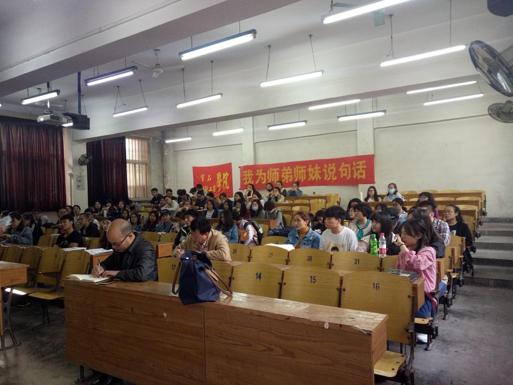 宝石与材料工艺学院院长王礼胜对同学鼓励动员,王院长向各位参会师生表示感谢,向考研成功的榜样致以祝贺,并用亲身经历向同学分享考研之路虽荆棘遍地,确受益良多,喜获终身。不仅为人生增添了充实的经历,知识层面也融会贯通,自身素质也有了提升,王院长鼓励同学们要坚持不懈,切忌半途而废。只有认准目标与方向并付出行动才能有所收获。