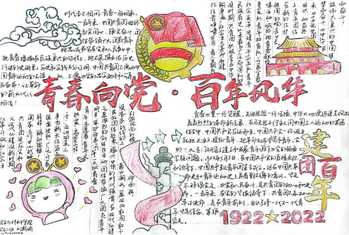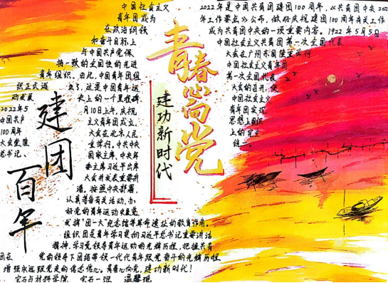 活动期间同学们积极参与,以丰富多彩、图文并茂的形式在手抄报上展示了中国共产主义青年团的奋斗历程,回顾了共青团的初心使命,彰显了当代共青团员的优良品质,树立理想信念,紧跟党走,为民族复兴、国家富强努力奋斗!