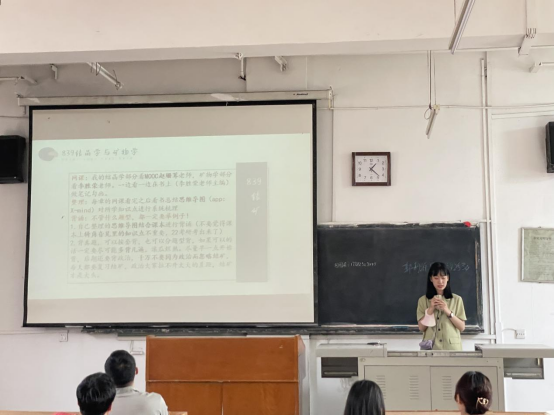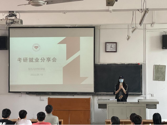 18级宝石及材料工艺学专业石晨曦向我们介绍了考研各个学科的学习方法,学习要做好学习计划,用更加效率的方式去学习。把考研当作一场主动的学习而非一场机械的备战,不要过度依赖经验贴,不要被那些贩卖焦虑的人影响,不要攀比进度,留下更多能安静思考的时间;18级宝石及材料工艺学专业郝淑瑶向我们介绍了考研各个学科的学习方法,推荐了自己常用的APP和公众号,向同学们介绍了关于调剂方面的问题;18级宝石及材料工艺学专业谭竹介绍了宝石及材料工艺学专业比较好的就业方向和各类的就业岗位的情况,分享了自己考研学习的方法和心得。
