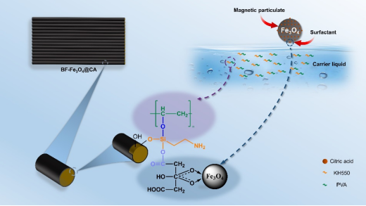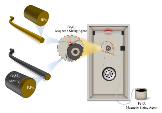 玄武岩纤维材料研究所杨春成团队以“Surface sizing introducing Fe3O4nanoparticles for magnetic properties strengthening of basalt fibers”和“Preparation and characterization of FeZrB amorphous ferrofluids as magnetic sizing agents for basalt fibers coating”为题的学术论文,研究生李腾为第一作者,导师杨春成教授为通讯作者。材料科学领域国际期刊《Materials》(中科院3区,IF=3.1)和工程技术领域国际期刊《Journal of The Textile Institute》(中科院4区,IF=1.7)也在线刊发了以研究生李腾为第二作者,其导师杨春成教授为第一作者的题为“Magnetorheological and Viscoelastic Behaviors in an Fe-Based Amorphous Magnetic Fluid”和“Effect of addition of SiO2and Al2O3on the dielectric properties of basalt glasses”的学术论文。