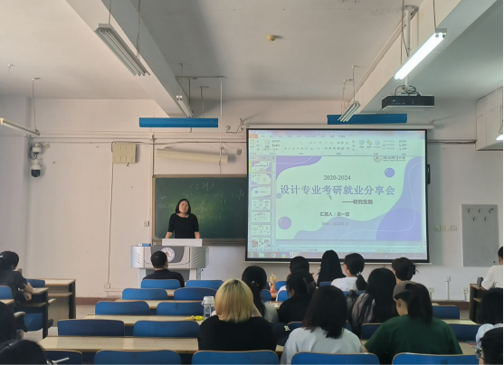 副院长金翠玲老师、产品设计教研室主任牟云老师、2020级辅导员彭利冲老师以及产品设计专业2021、2022级学生,由2020级的学长学姐分享考研和就业经验。