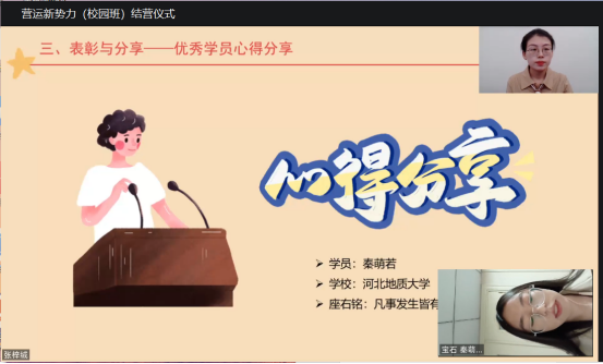 在结业仪式上,优秀学员秦萌若作为代表进行了发言,她深情回顾了这段学习旅程中的点点滴滴,分享了自己在珠宝知识、销售技巧以及团队合作等方面的成长与收获,表达了对网黄直播