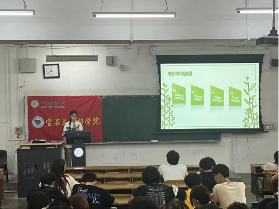 活动开始,材料科学与工程专业的李佳鑫学姐为同学们讲解了她在考研时期的备考安排并作出了详细的建议指导。她提出,要制定一份时间表,按照时间表上的科目顺序进行有效备考并为同学们推荐网课、真题以及她的学习方法和复试经验。她强调,合理的时间安排和坚定的毅力是成功的关键。同时,她也为同学们介绍了填写简历的重点要素。