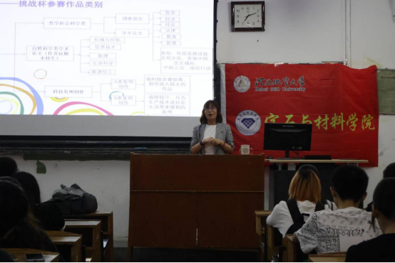 活动开始是由科协主席黄晓艳进行挑战杯的介绍,使同学们对“挑战杯”大学生课外学术科技作品竞赛有了一定程度的了解。
